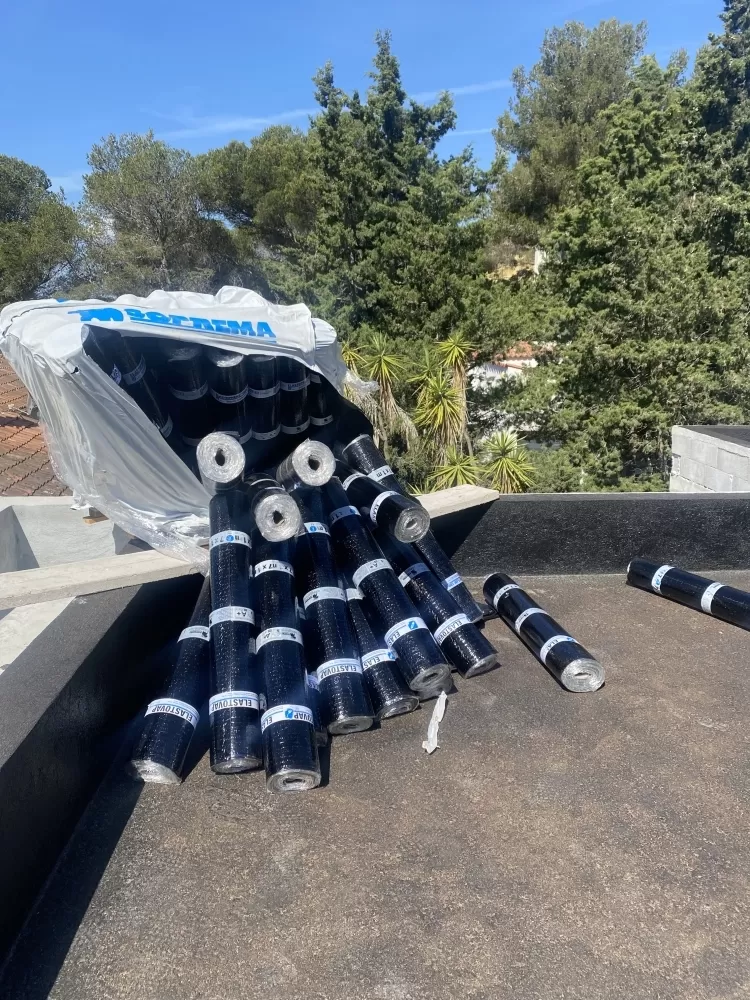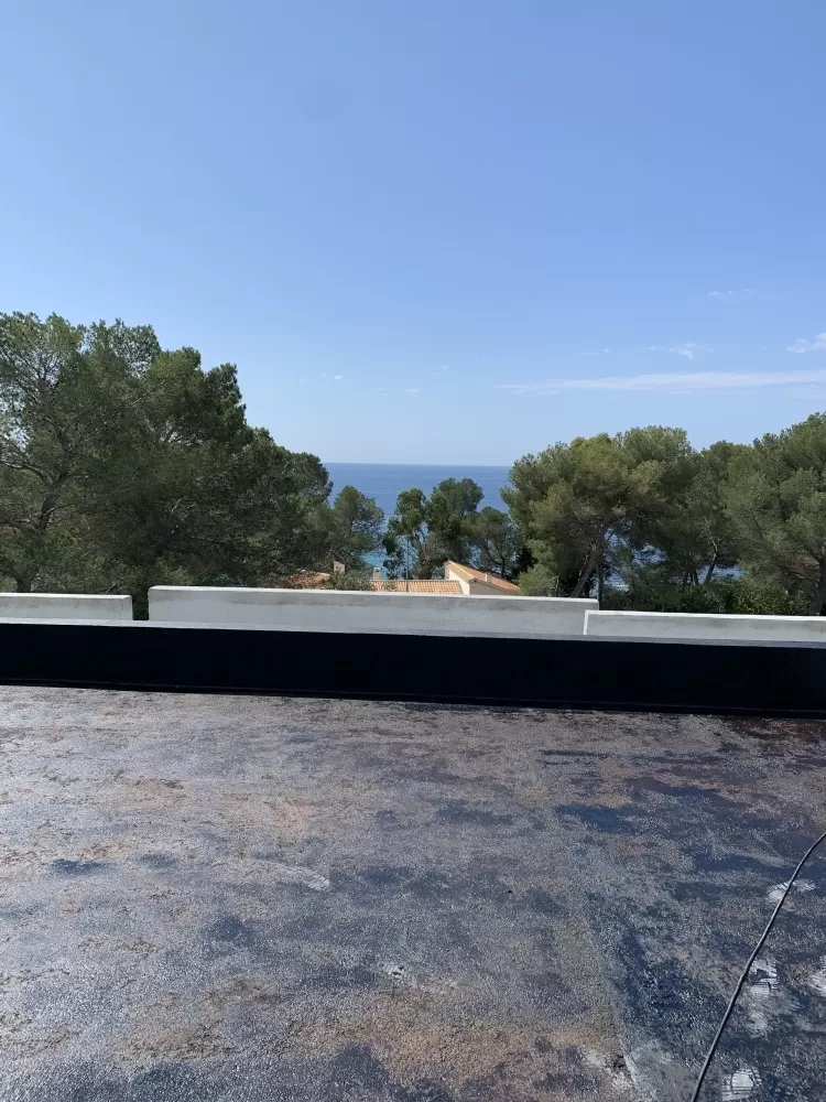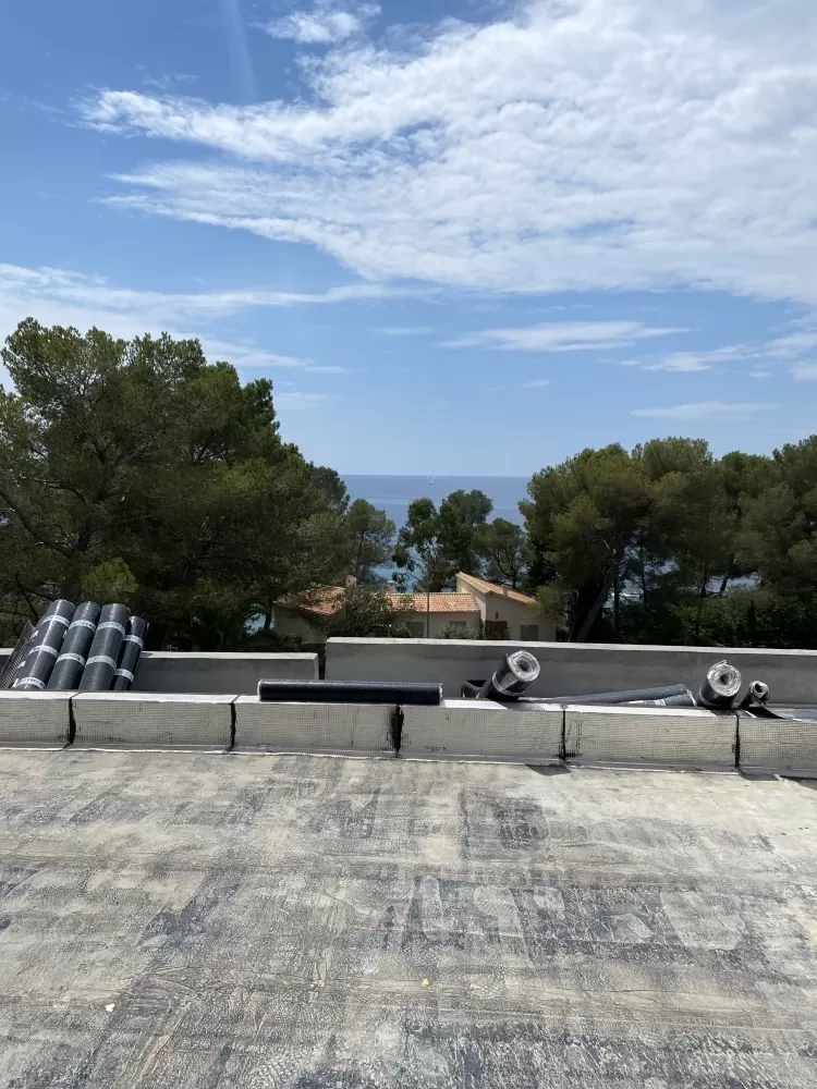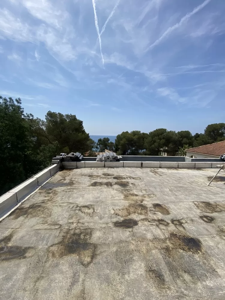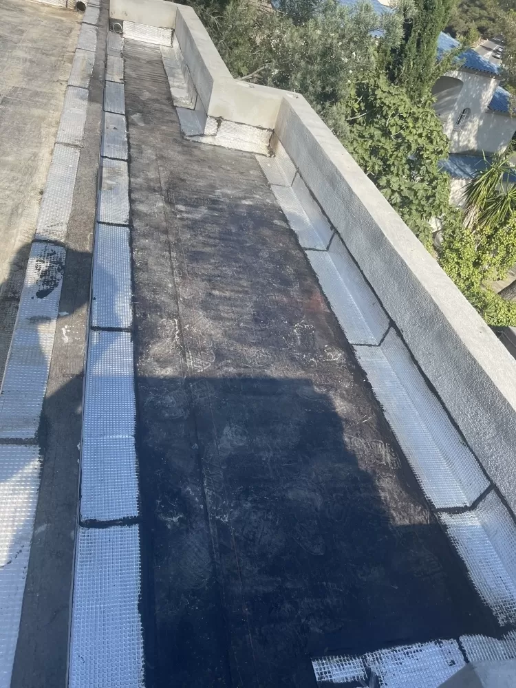Nous avons réalisé l’étanchéité d’un toit terrasse, avant la pose de l’isolation et la chape.
