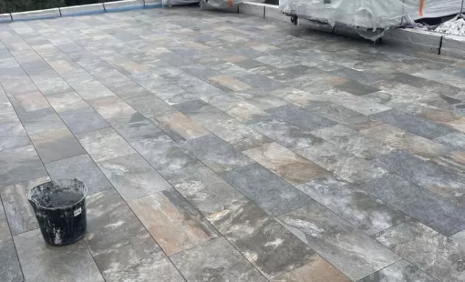 Pose de carrelage sur toit terrasse, Pose d’un carrelage Bali, sur toit terrasse, après la pose d’une étanchéité optimale.
